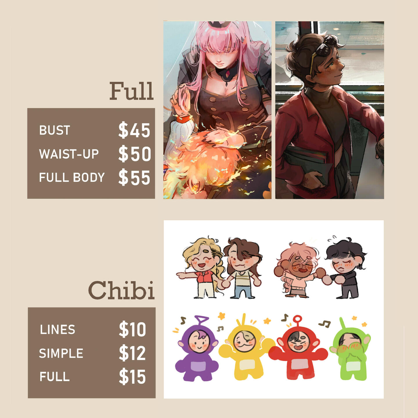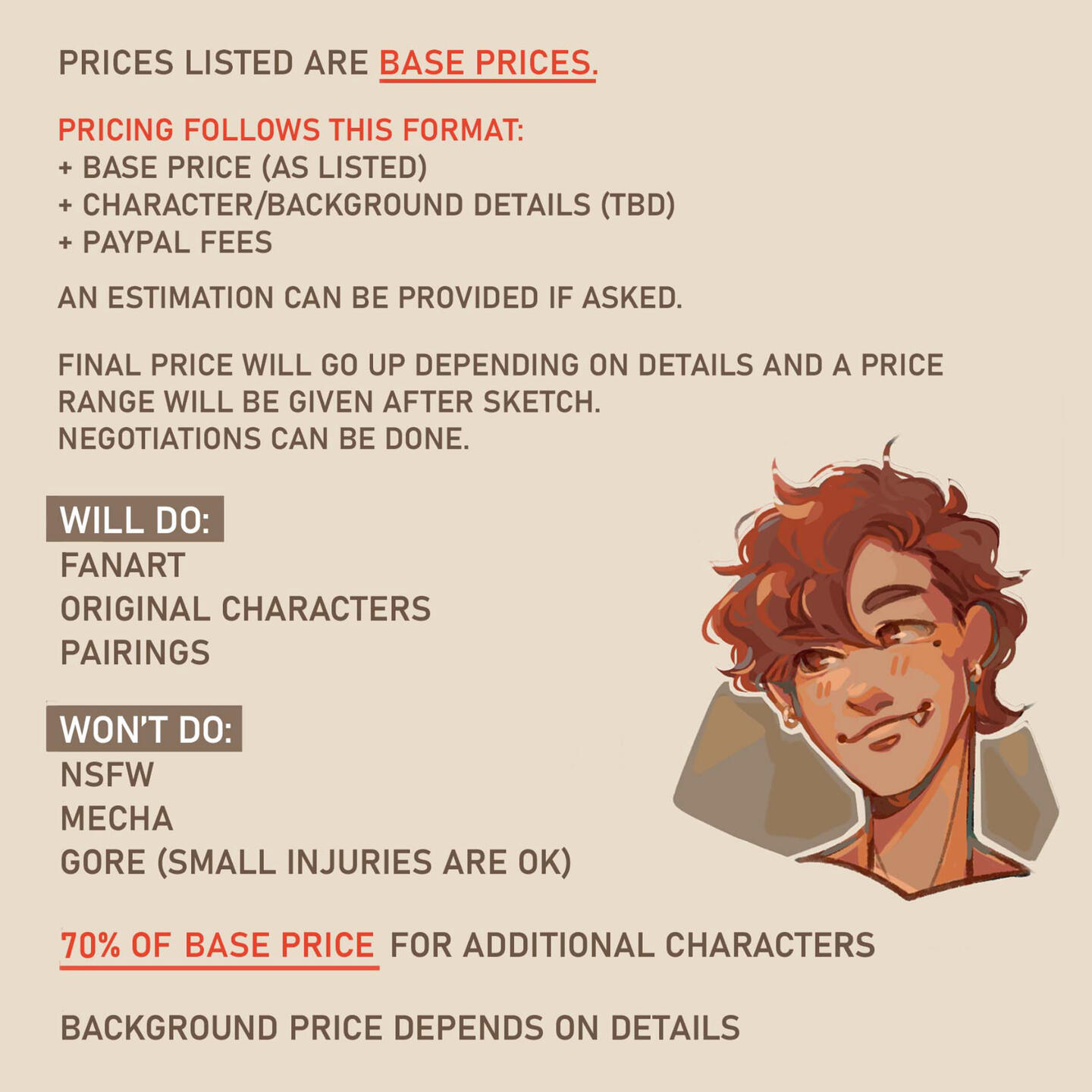 All prices are in USD. Payment is done after sketch and through Paypal invoice.
